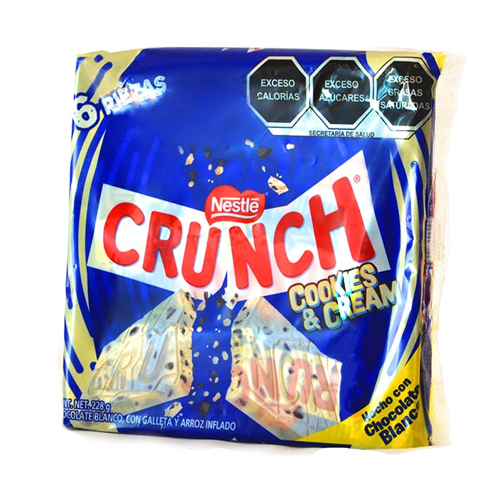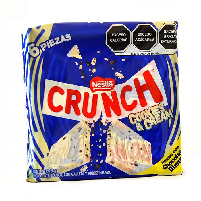 Chocolate blanco crunch cookies and cream, con galleta y arroz inflado 6 pz cantidad